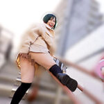 ボンテージテープで身動きできないようにされても余裕の笑顔のこずえちゃん。